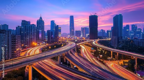 © slamet, Obraz premium Cityscape at Dusk: A Symphony of Lights and Motion