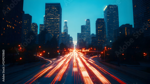 © THANAT SAINAK, Fototapeta premium Cityscape at Dusk with Light Trails