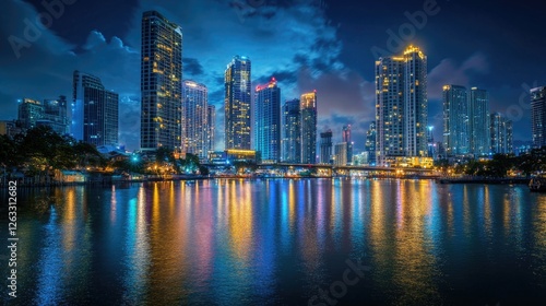 © Olga, Obraz premium Cityscape at Night Across Water