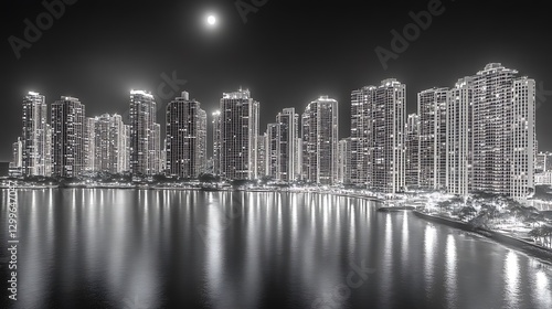 © Muhamad, Fototapeta premium Cityscape at Night Under a Bright Moon