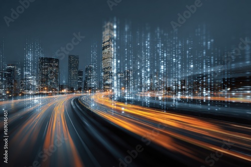© Taufik, Obraz premium Cityscape at night with digital overlay
