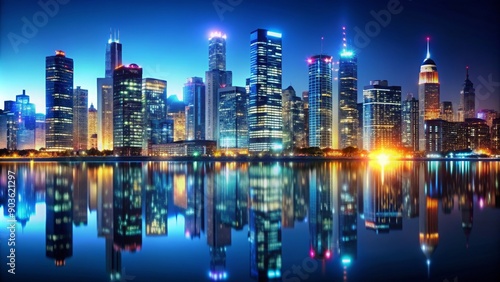 Fototapeta premium Cityscape at night with illuminated buildings and glowing lights , urban, nightlife, skyscrapers