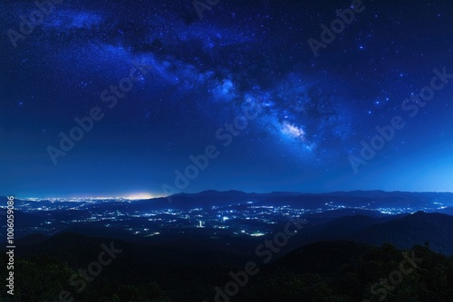 © Goncharenko, Fototapeta premium Cityscape at Night with Milky Way