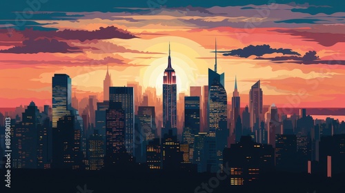 © munawaroh, Fototapeta premium Cityscape at Sunset.