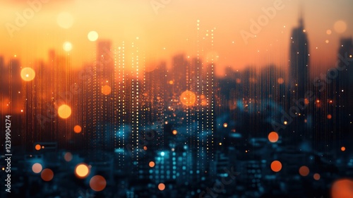 © Balerinastock, Fototapeta premium Cityscape at Sunset: A Digital Metropolis
