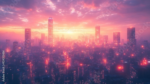 © BOJOShop, Fototapeta premium Cityscape at Sunset with Pink Sky