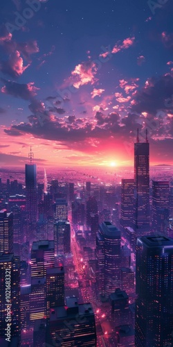 Fototapeta premium Cityscape at Sunset with Vibrant Colors