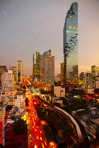Fototapeta premium Cityscape Bangkok zmierzch wieczór noc Tajlandia panoramę
