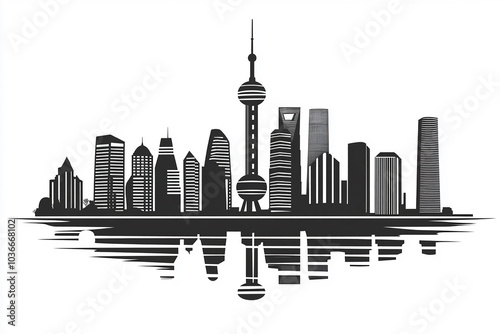 © MrGraphics1990, Obraz premium Cityscape black and white silhouette illustration on white background