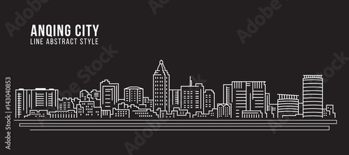 Naklejka premium Cityscape Building Line art Vector Illustration design - Anqing city
