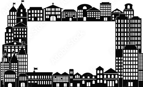 Obraz premium Cityscape buildings frame vector illustration black and white editable stock