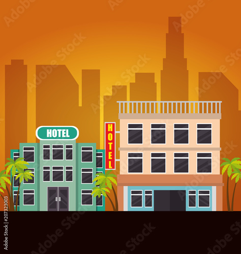 © Gstudio, Obraz premium cityscape buildings scene icons vector illustration design