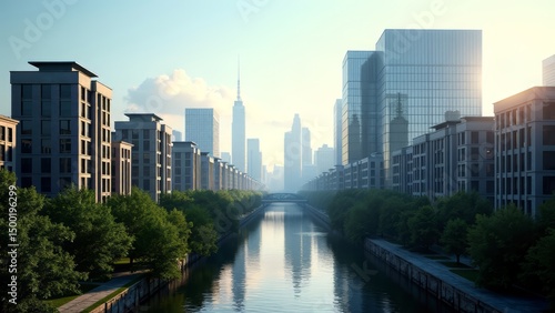 © PixelMastery , Naklejka premium cityscape canal modern architecture