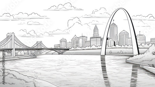 © muhfuadi, Fototapeta premium Cityscape drawing black and white