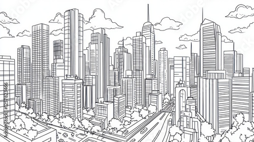 Fototapeta premium Cityscape drawing, urban landscape, highway, skyline, illustration, design,...