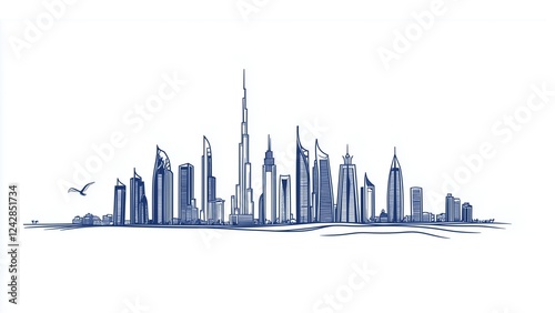 Obraz premium Cityscape, Dubai skyline vector line art/ illustration.