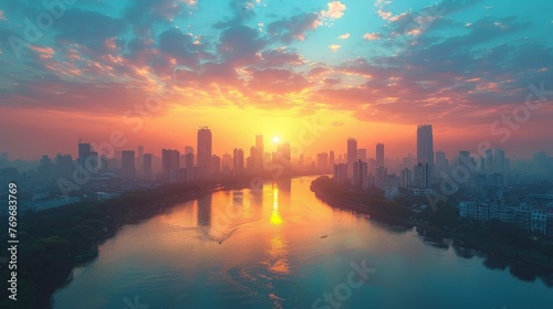 Fototapeta premium Cityscape from Above: An aerial view of a city skyline, capturing the energy...