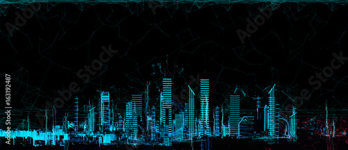 Fototapeta premium Cityscape futuristic 3d city neon light
