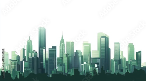 © Kopi stock, Fototapeta premium Cityscape illustration green tones