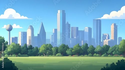 © share, Obraz premium Cityscape Illustration Skyline Park