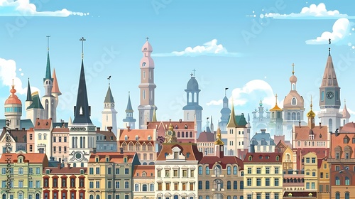 Fototapeta premium Cityscape Illustration with Multiple Towers and Buildings