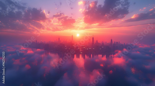 © KALEYA, Obraz premium Cityscape in the Clouds 3D Illustration