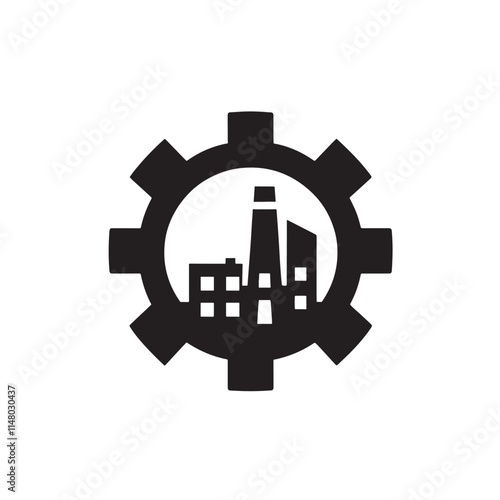 © Black_Studio, Obraz premium Cityscape inside gear icon.