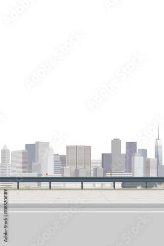 Naklejka premium Cityscape isolated view from sidewalk have skyscraper behind on white background vertical template graphic illustration.