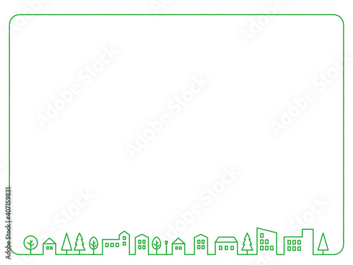 Obraz premium Cityscape line frame 緑のラインの街並みフレーム