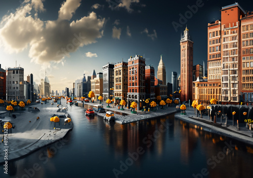 © 和正 住原, Fototapeta premium Cityscape made of blocks: block-built urban area.