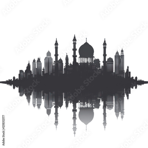 Naklejka premium Cityscape Mosque Reflection Night Skyline