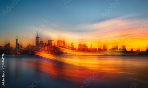 © Munardesign, Fototapeta premium Cityscape Motion Blur, Abstract Impression of Urban Sunset Panorama