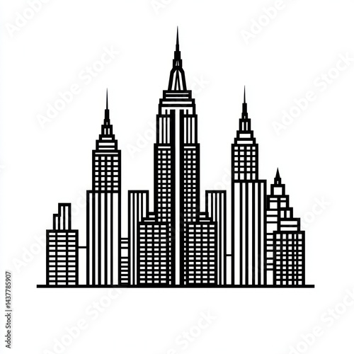 Naklejka premium Cityscape, New York skyline, buildings, illustration, urban background, design element
