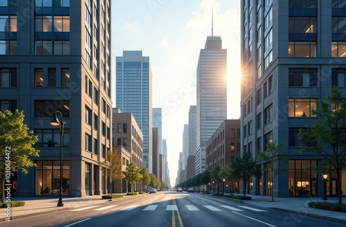 © Natalia, Fototapeta premium Cityscape of a big city with high-rise buildings, street with road and transport