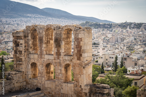 © Hladchenko Viktor, Fototapeta premium Cityscape of Athens, view from Acropolis on the hill. Vacation, travel, destination concept.