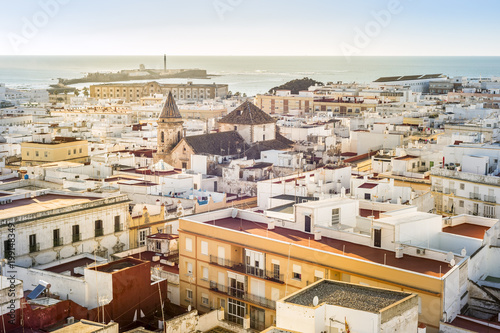 Fototapeta premium Cityscape of Cadiz surrounded by The Atlantic Ocean , Andalusia, Spain