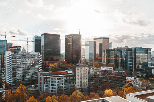 Obraz premium Cityscape of downtown Brussels with business scyscrapers in late morning hours