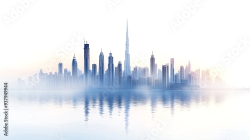 © The Little Hut, Naklejka premium Cityscape of Dubai United Arab Emirates isolated on white background : Generative AI