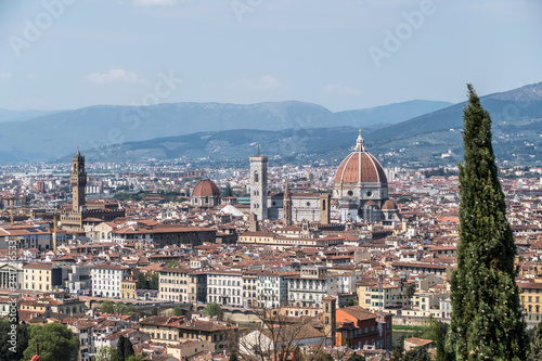 © Luca, Fototapeta premium Cityscape of Florence with Cathedral of Santa Maria del Fiore in background from Michelangelo square