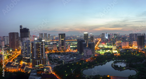 © Hanoi Photography, Fototapeta premium Cityscape of Hanoi skyline at Cau Giay park during sunset time in Hanoi city, Vietnam