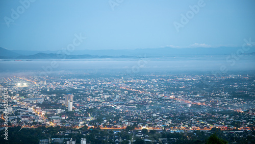 Fototapeta premium Cityscape of Hatyai City view in morning with mist