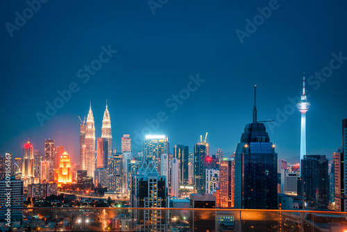 Obraz premium Cityscape of Kuala lumpur city skyline at night in Malaysia.