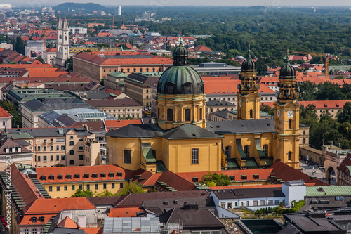 Obraz premium Cityscape of Munich with Theatine Church, a view from Frauenkirche
