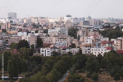 © MoiraM, Fototapeta premium Cityscape of old part of Bucharest, with many worn out buildings, as seen from the Palace of Parliament