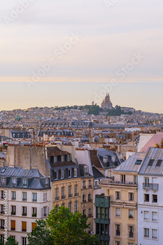 Obraz premium Cityscape of Parisian rooftops and Sacre-Coeur minor basilica. Sacred Heart...
