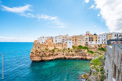 Fototapeta premium Cityscape of Polignano a Mare town, Puglia region, Italy, Europe. Seascape of Adriatic sea