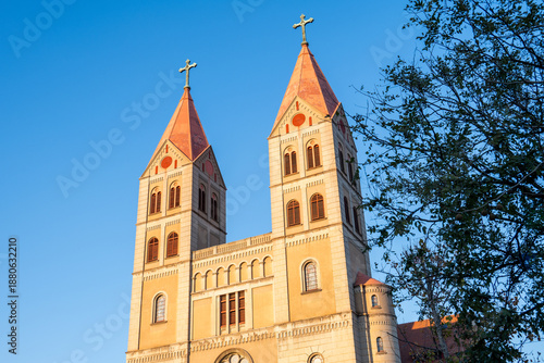© Nicholisa, Obraz premium Cityscape of Qingdao with St. Michael’s Cathedral