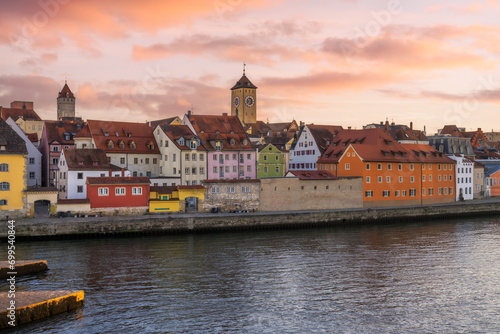 © manfredxy, Fototapeta premium Cityscape of Regensburg at the river Daube during sunset