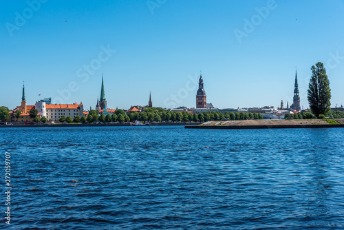© JonShore, Fototapeta premium Cityscape of River and Riga Latvia on a Clear Sunny Day