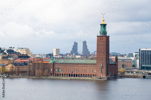 Fototapeta premium Cityscape of Stockholm, Sweden. Stockholm City Hall Island Kungsholmen. Norra...